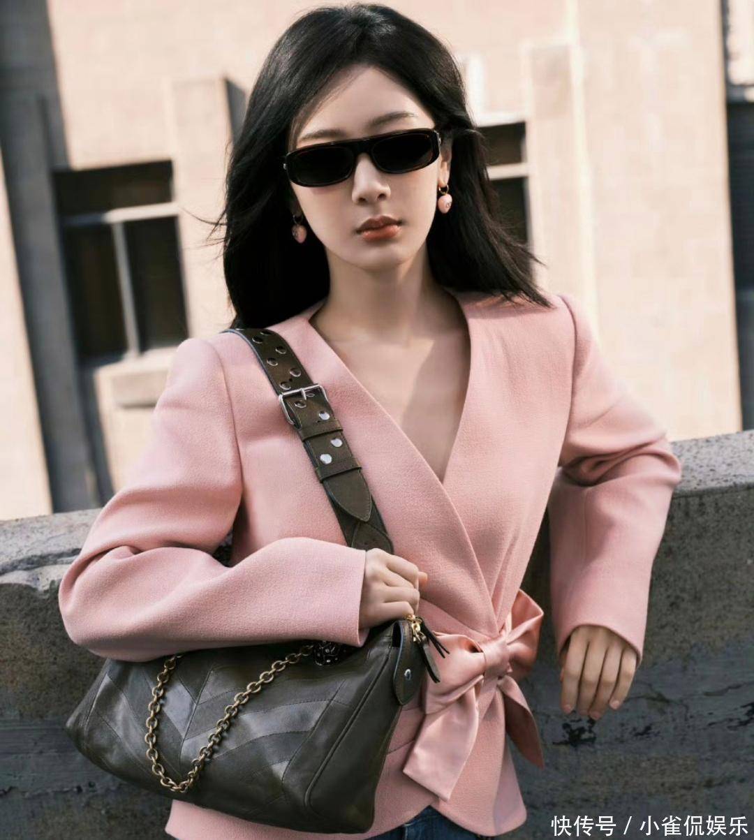 杨紫出发罗马时装周!一身粉色蝴蝶结西装造型粉嫩有型,少女感满满